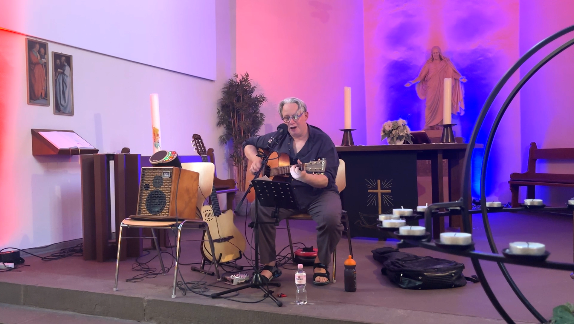 An der Gitarre beweist der Künstler seine ganze Vielseitigkeit und sticht in seinem Genre über den Level „Begleitgitarre" deutlich hinaus. Bei Lesungen ist er in seinem Heimathafen als Instrumentalist gefragt.