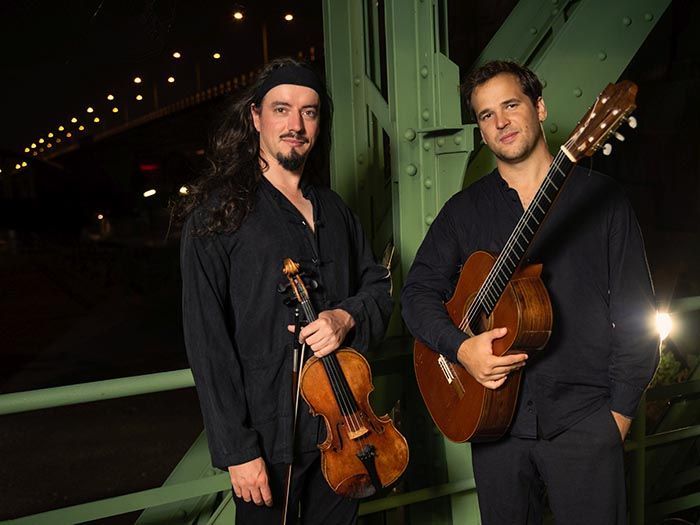 Geleitet von der Suche nach immer intimerer Kammermusik schaffen die französischen Musiker Raphaël Béreau und Jean-Samuel Bez eine Atmosphäre der Sanftheit und Subtilität, die aus der Kombination der Klangfarben von Violine und Gitarre entsteht. Das 2019 in Wien gegründete Duo spielt nicht nur das traditionelle Repertoire des Ensembles, sondern bereichert es auch durch Adaptionen und Arrangements vieler der schönsten Seiten der französischen und deutschen Romantik.